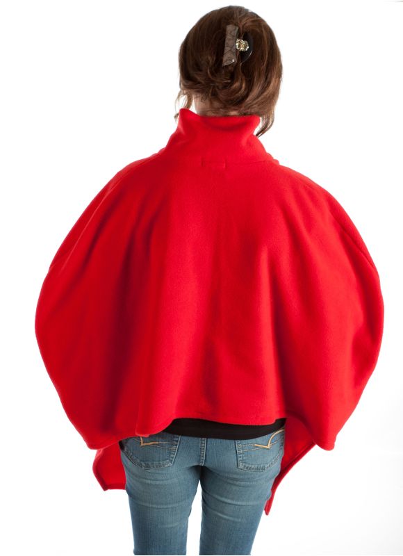 Cape fleece with one length sizes up to knee . With shawl collar and no sleeves. Available in summer or winter version. The summer version has one layer of fleece, the winter version has two layers of fleece. Top quality materials made. Suitable for people who suffer from restricted arm movement, contractures or must remain seated. Easy and quick to put over the head.